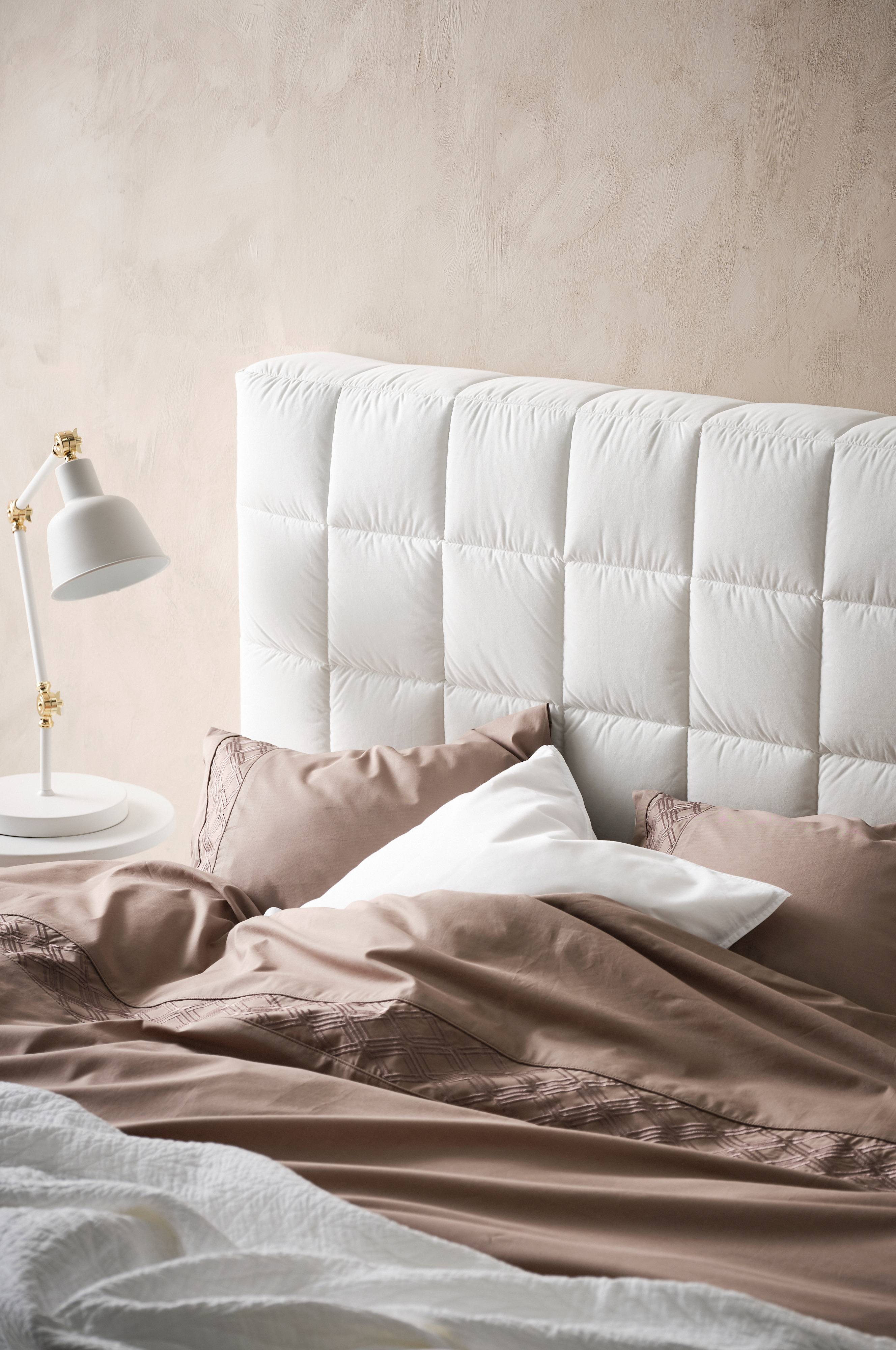 Een vrijstaand hoofdbord met een frame van hout en multiplex. Het hoofdbord heeft een afneembare stoffen bekleding van polyester. Een perfect interieurdetail waarmee je een persoonlijke stijl en een knusse sfeer in de slaapkamer creëert. Wandbeslag wordt meegeleverd.