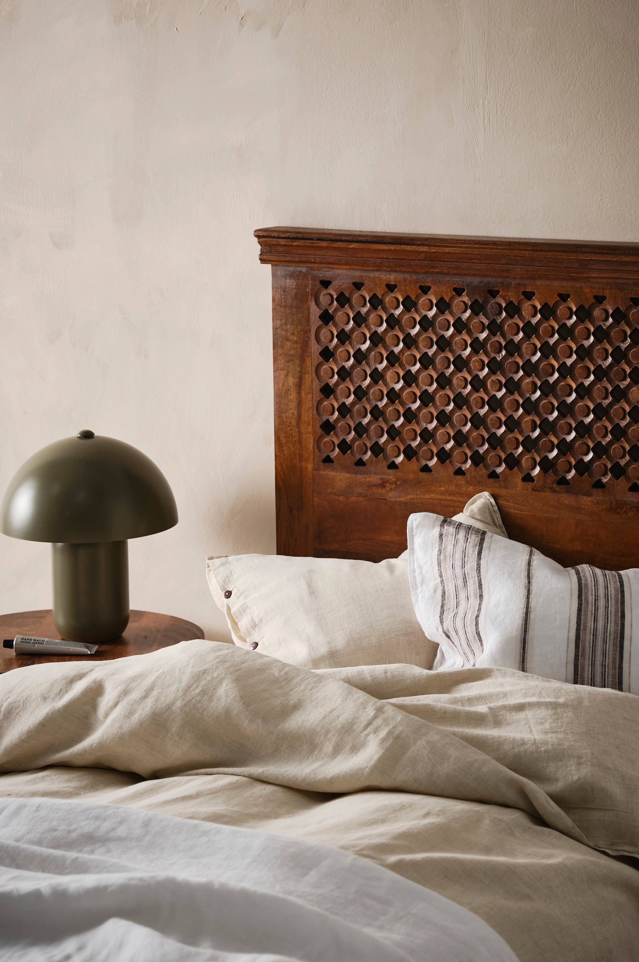 Een hoofdbord van massief mangohout. Omlijst je bed met een decoratief houtgesneden hoofdbord.
