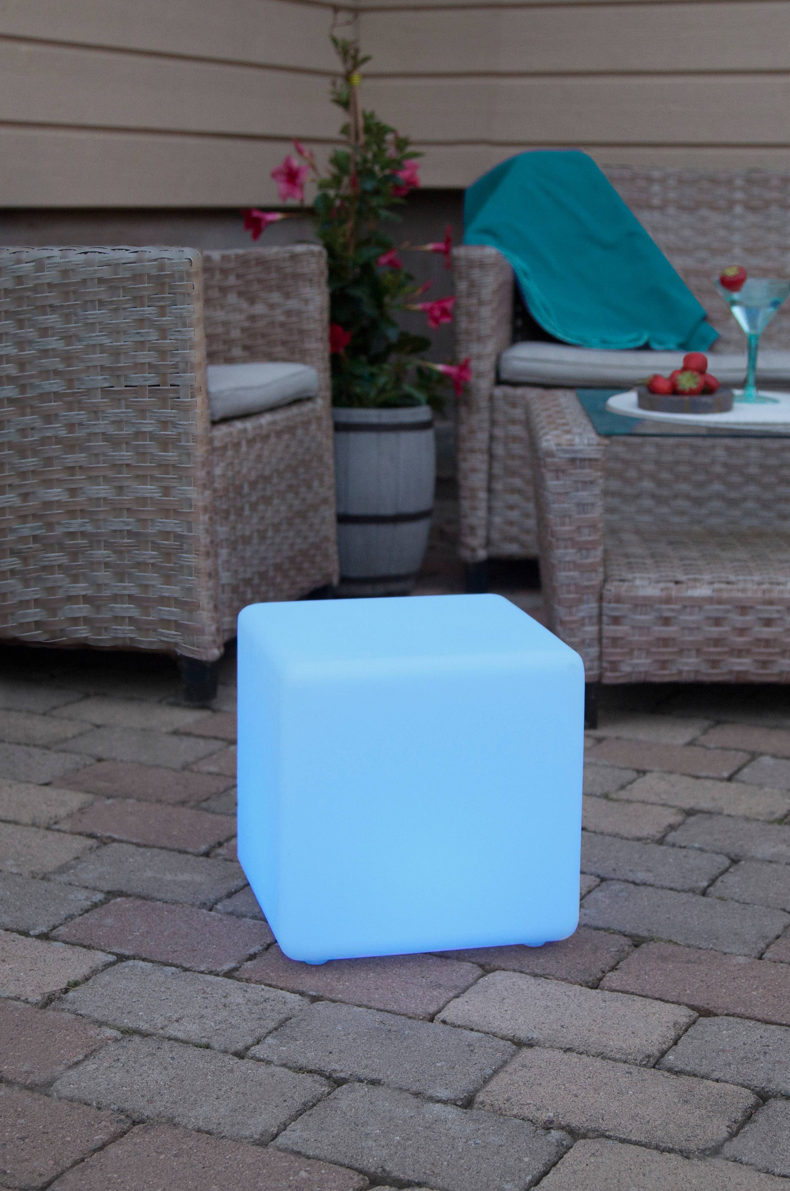 Decoratieve lichtkubus voor binnen en buiten met afstandsbediening. Je kunt kiezen voor afwisselende kleuren of één kleur. Werkt op 4 oplaadbare AAA-batterijen (NiMH-CR2032). Inclusief batterijen. Gebruik voor het opladen van de batterijen de oplader. Bij volledig opgeladen batterijen brandt het product ca. 8 uur.