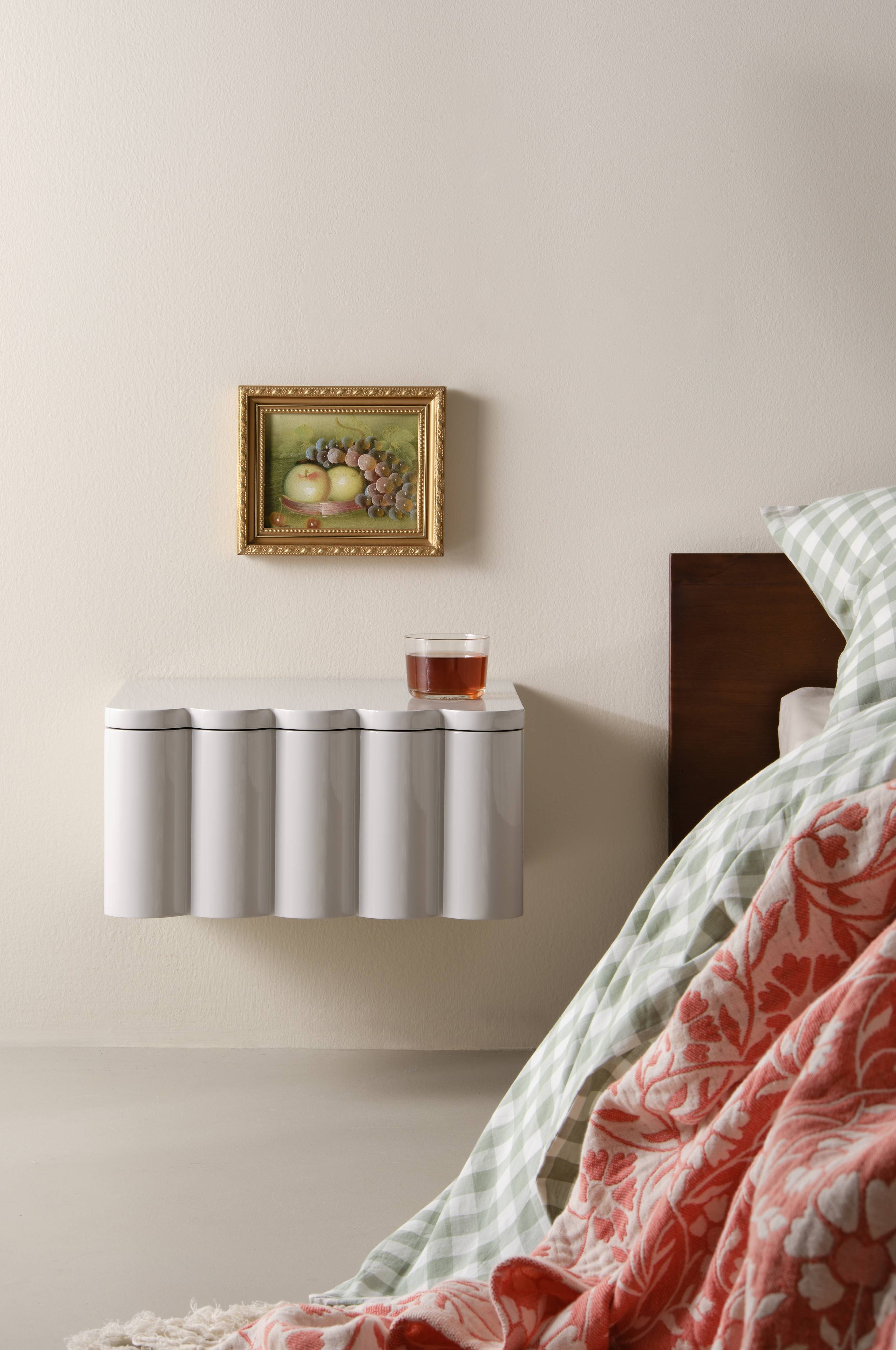 Het nachtkastje VALLMO combineert modern design met praktische functionaliteit, waardoor het een veelzijdige aanvulling is voor elk huis. Dit wandkastje is gemaakt van MDF met een glanzende afwerking en is perfect voor compacte ruimtes zoals gangen of slaapkamers. De slanke vorm maximaliseert niet alleen de ruimte, maar voegt ook een stijlvol randje toe aan je inrichting.
