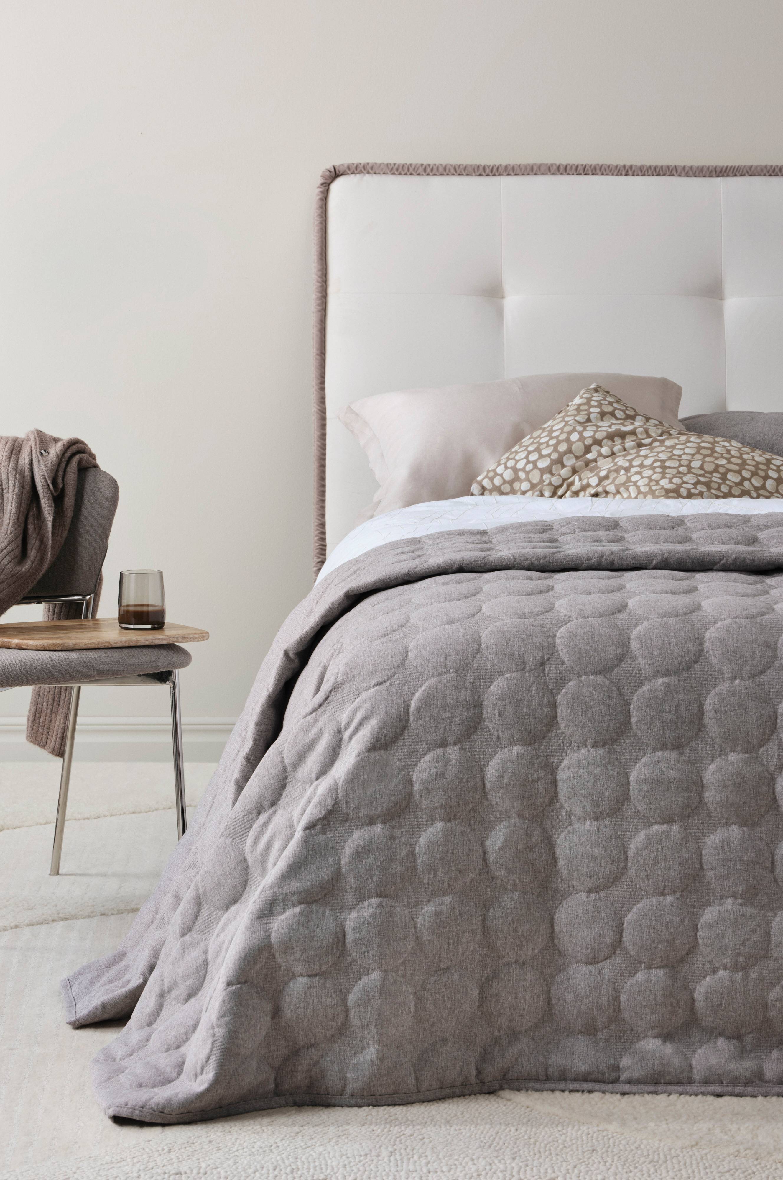 Een sprei voor een eenpersoonsbed. Een sprei van polyester dat aanvoelt als heerlijk linnen met een doorgestikt dessin van gladde ovalen met smalgestreepte tussenruimtes. Het stiksel vormt een decoratief dessin dat bovendien de vulling op zijn plaats houdt en de sprei compact en soepel doet aanvoelen, waardoor je hem makkelijk over je bed drapeert. De sprei is rondom mooi afgewerkt met zoom. Kussenhoes niet inbegrepen, wordt apart verkocht.