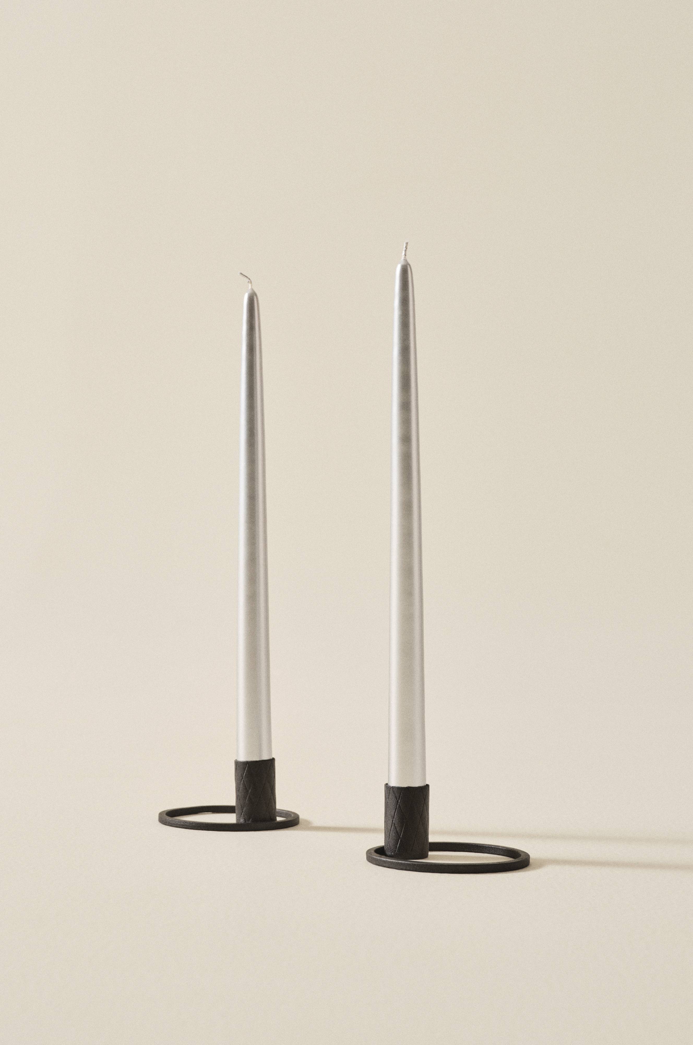 Een set van twee dinerkaarsen van stearine en paraffine die vervolgens in een metallic kleur zijn gedoopt. De kaarsen zijn met de hand gemaakt in Zweden. Met de hand kaarsen maken is een mooie Zweedse traditie. Door kaarsen aan te steken creëer je een gezellige sfeer. De stearine bevat geen palmolie. Paraffine heeft goede brandeigenschappen en het RAL-keurmerk laat zien dat de paraffine met weinig rook en roet brandt.