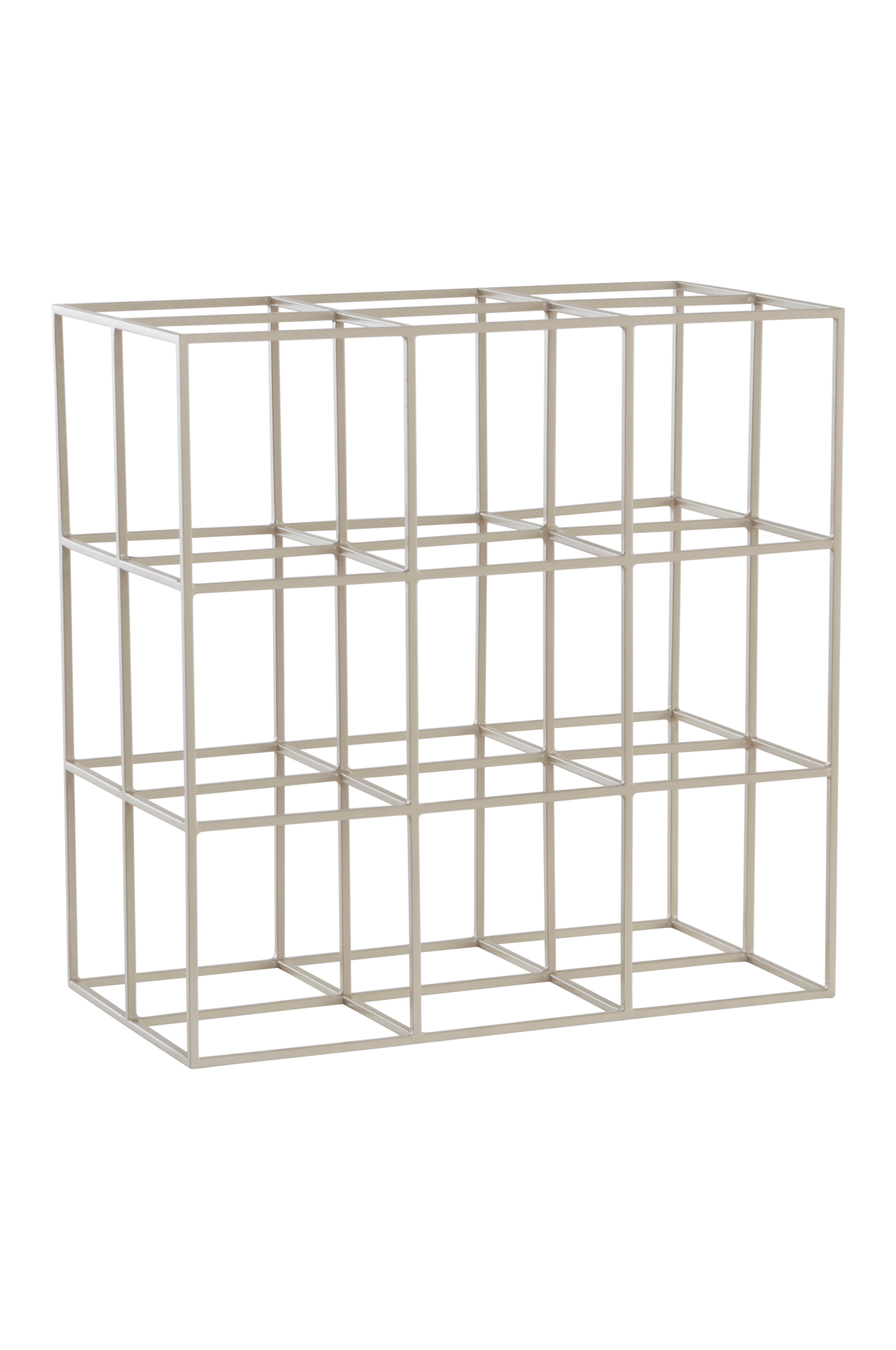 Een wijnrek voor negen flessen. Gemaakt van hoekig metaal voor een strak design dat overal past.