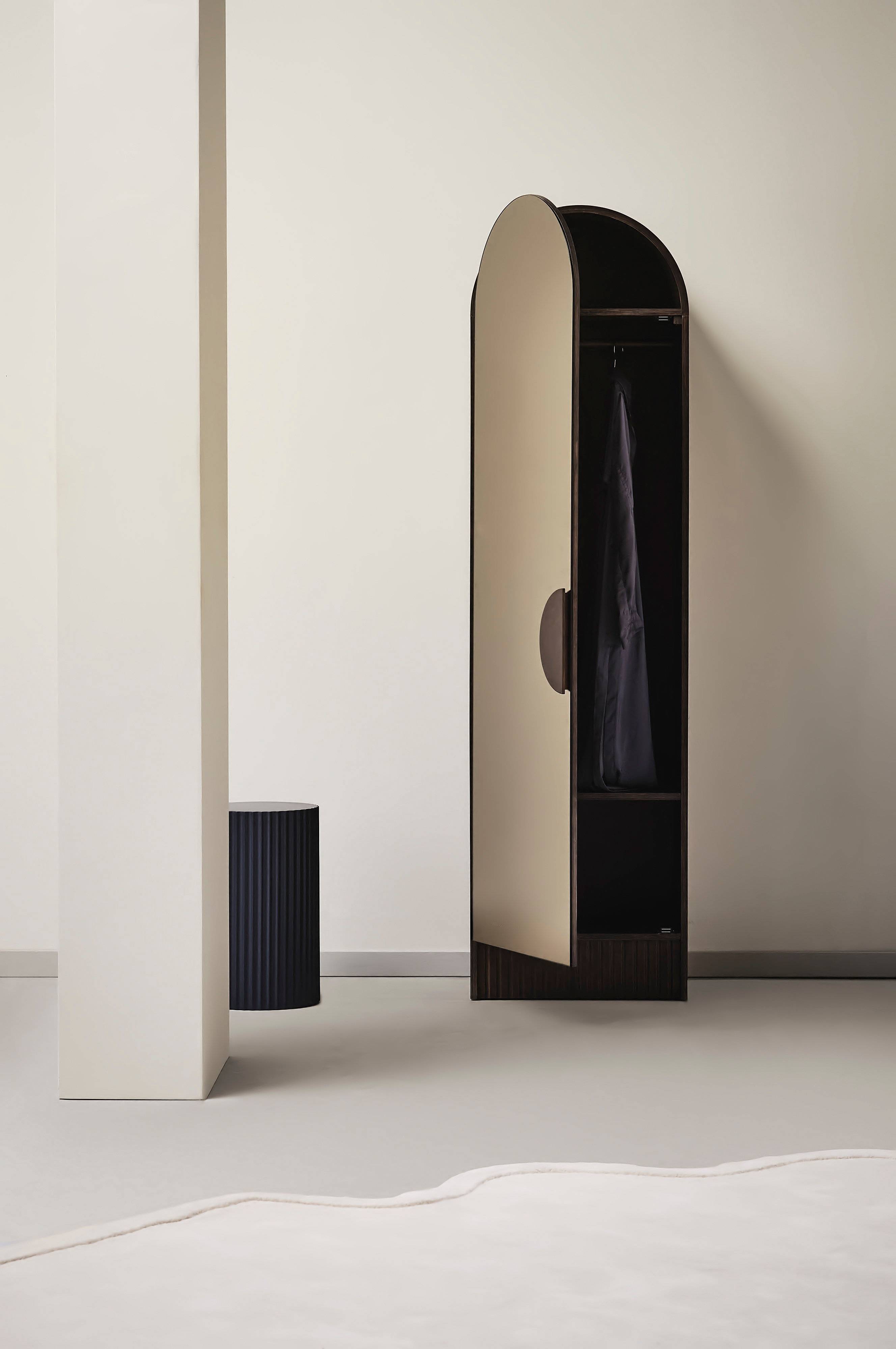 Verfraai je slaapkamer met WARD, een chique kast gemaakt van beukenhout en gefineerd multiplex. Het ontwerp heeft een spiegelende deur, aangevuld met een slanke beukenhouten handgreep, die functionaliteit koppelt aan moderne esthetiek. Binnenin bieden een kledingstang en verplaatsbare planken voldoende opbergruimte om je kleding te organiseren. Ontdek de perfecte mix van vorm en functie met WARD, jouw stijlvolle oplossing voor het opbergen in de slaapkamer.